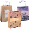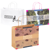 Lassen Sie hochwertige Papiertragetaschen mit Papierkordeln in vielen verschiedenen Größen bedrucken. Vom Flaschenformat von 10 x 40 x 10 cm über diverse mittelgroße Exemplare bis hin zum besonders großen Format (48 x 35 x 13 cm) finden Sie alles bei uns. Sämtliche Tragetaschen bestehen aus 100 g/m² starkem Kraftpapier in Weiß oder Braun. Die Farbkordeln gibt es in vielen Farben. Ihr Wunschmotiv realisieren wir 1/0-farbig, 4/0-farbig oder 4/0-farbig mit Weißdruck – stets in Top-Qualität.